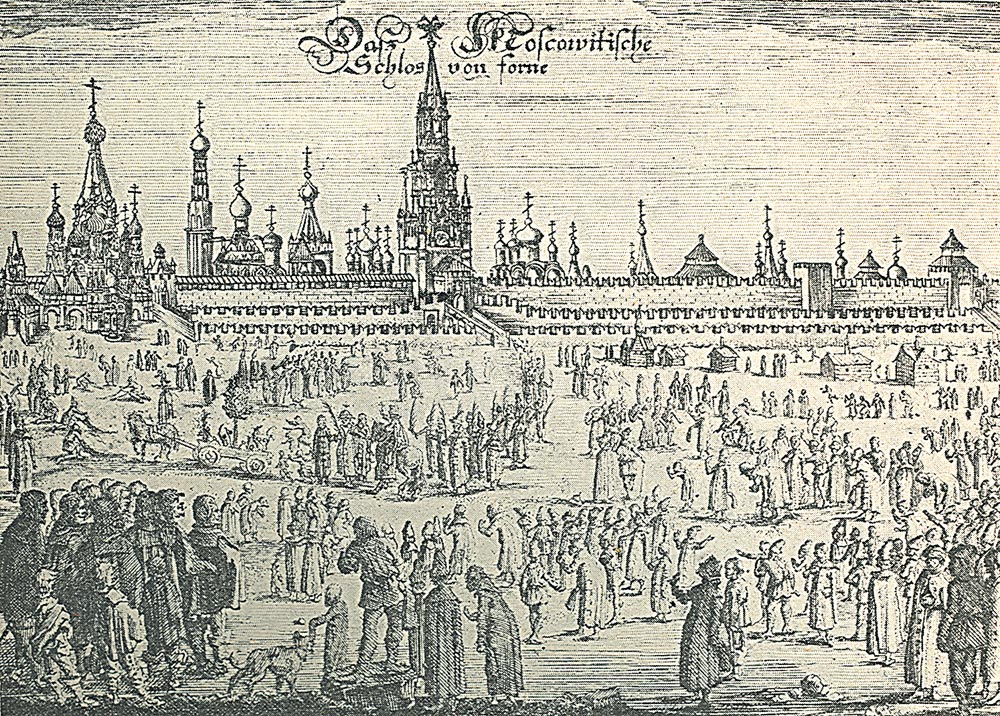 Москва, рискунок из книги Описание путешествия в Московию и через Московию в Персию и обратно, Адам Олеарий, изображение из открытых источников.