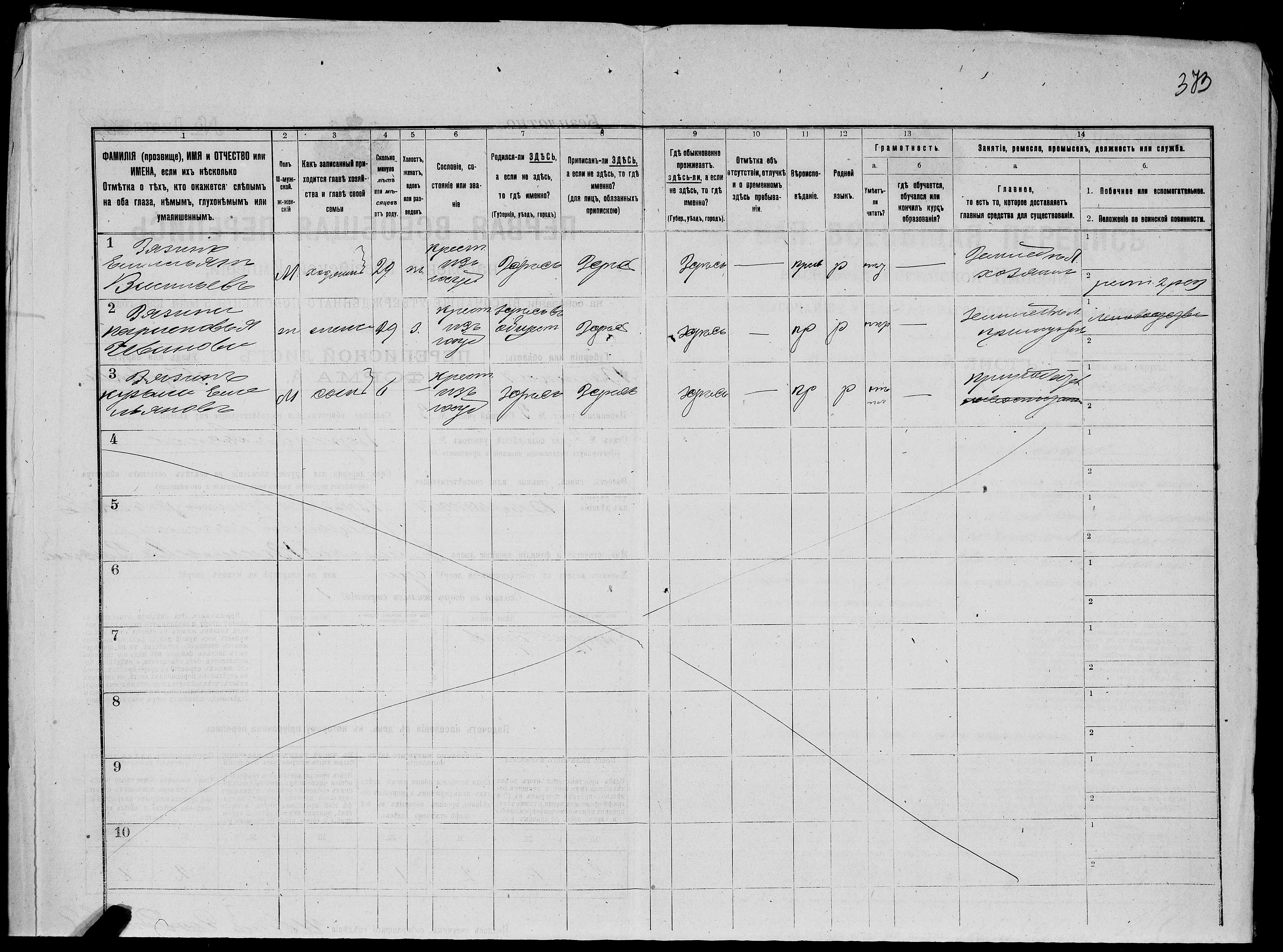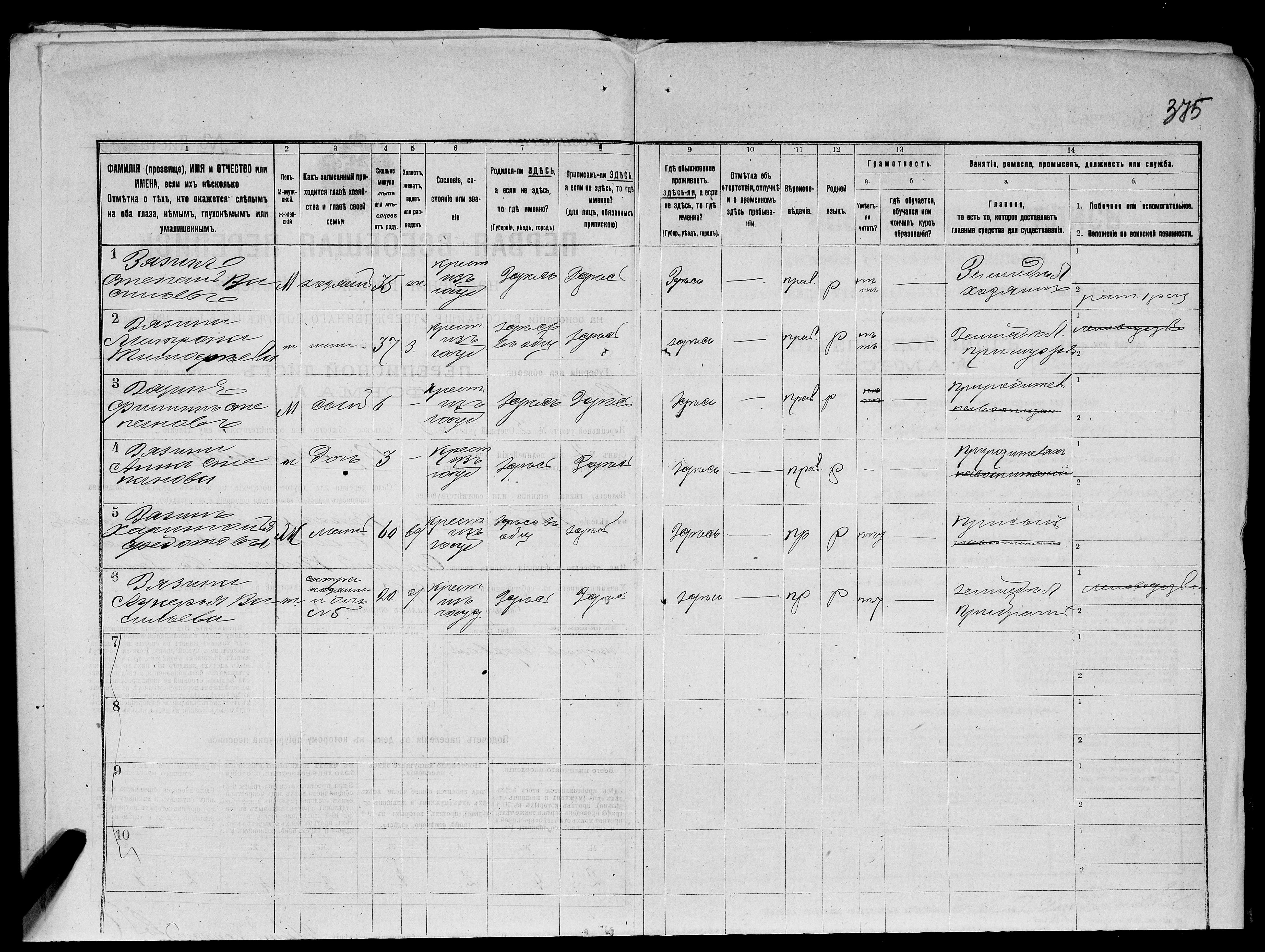 Перепись 1897 г. д. Верхобельской (Большой Полом)