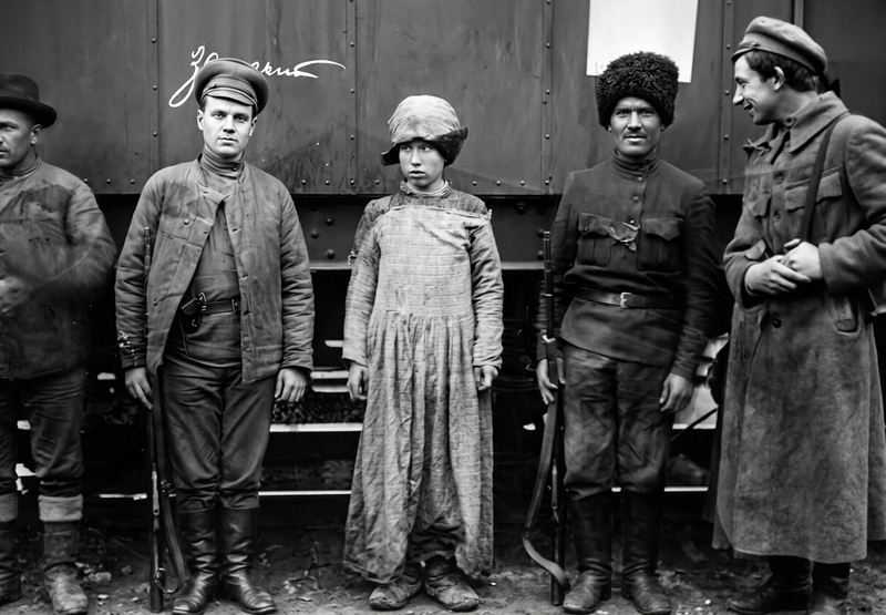В экспозиции музея снимок кадрирован, левая и правая части обрезаны. Выпросил у них скан оригинала и стало понятно, зачем обрезали. Посмотрите по ссылке: https://goskatalog.ru/portal/?ysclid=ml93ud3d5v538572161#/collections?id...