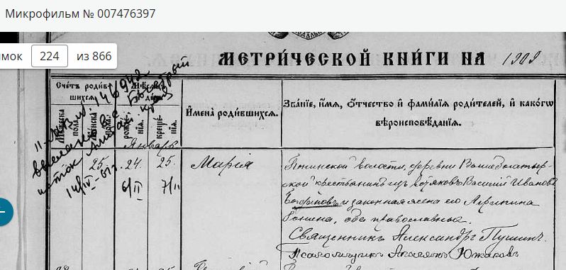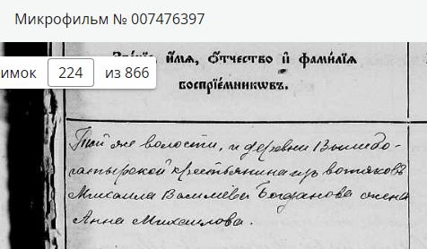 Родители: Понинской волости, деревни Вышебогатырской крестьянин из вотяков Василий Иванов Богданов и законная жена его Агрипина Ионина, оба православные