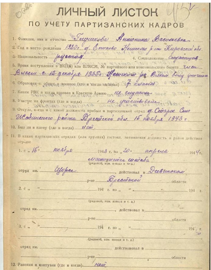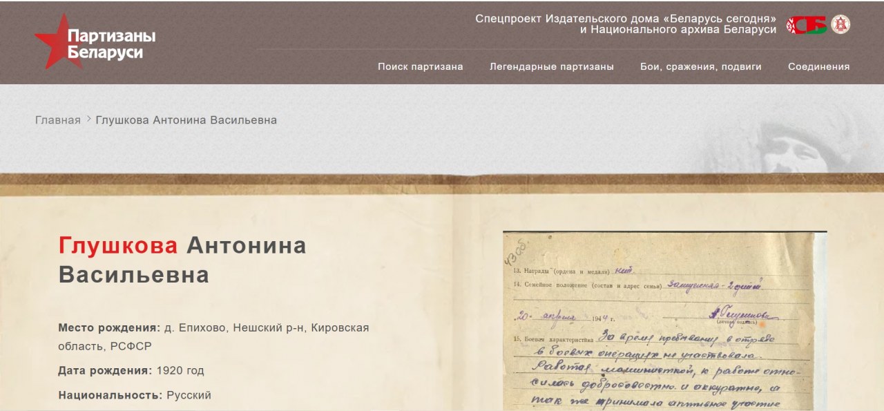 Увидела на сайте о партизанах Белоруссии и решила разместить на Родной Вятке. Может быть отыщутся родные.