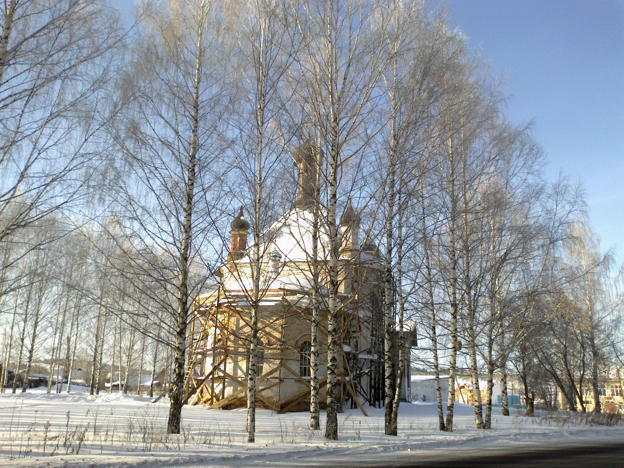 В 1850 г. из бывшей часовни на средства прихожан была построена деревянная церковь с одним престолом и освящена 25 января 1851 г. во имя Св. Равноапостольного князя Владимира.