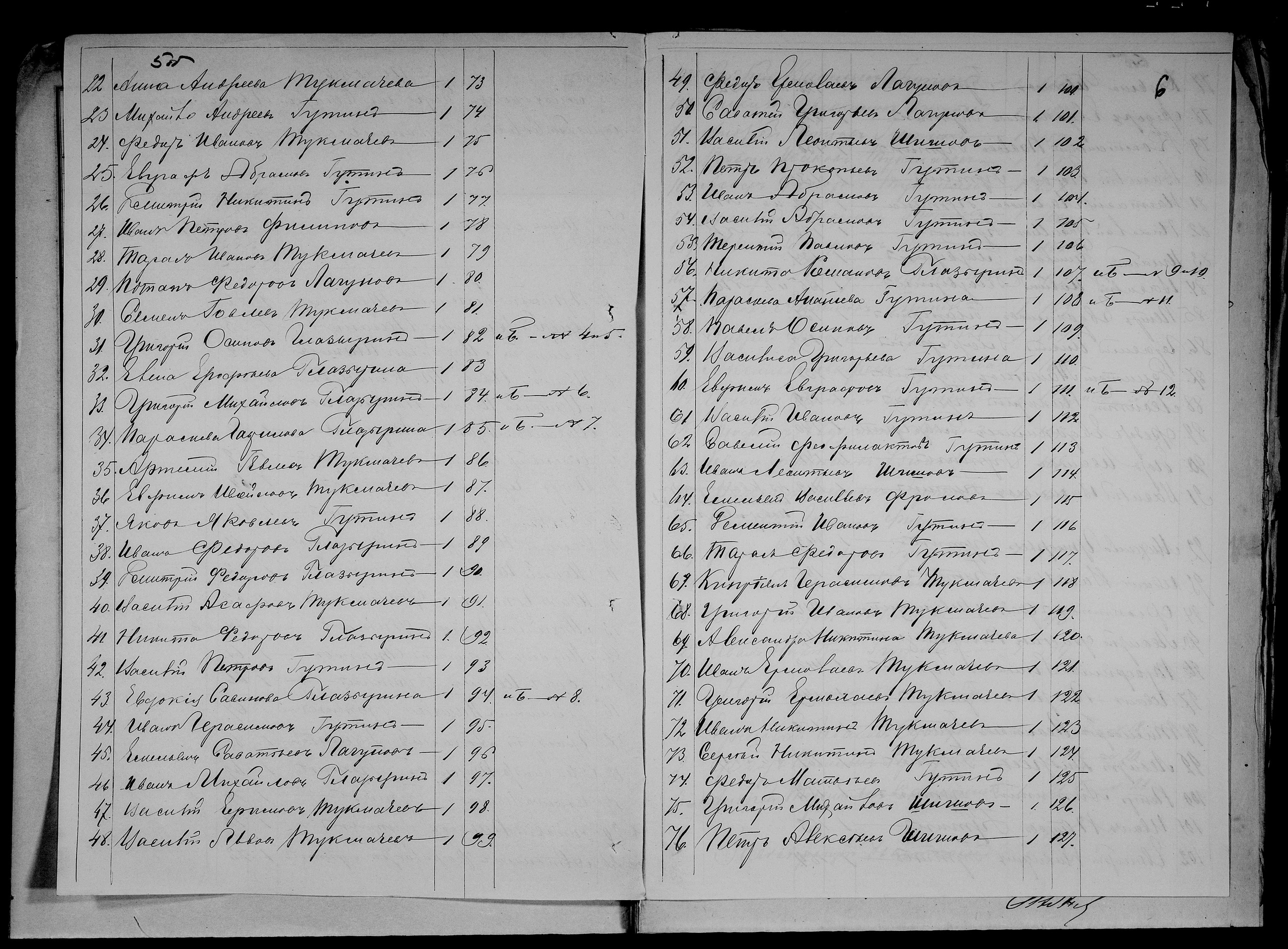 РГАДА фонд 350 опись 2 дело 4200 – Ревизская сказка 1762/63 года – Салтосарайская слобода Ялуторовского дистрикта Сибирской губернии (ныне Каргапольский и Белозерский муниципальные округа Курганской области). Там есть лист не относящийся к слободе. Это лист 56 – окончание переписи деревни Шубиной (неизвестной слободы):