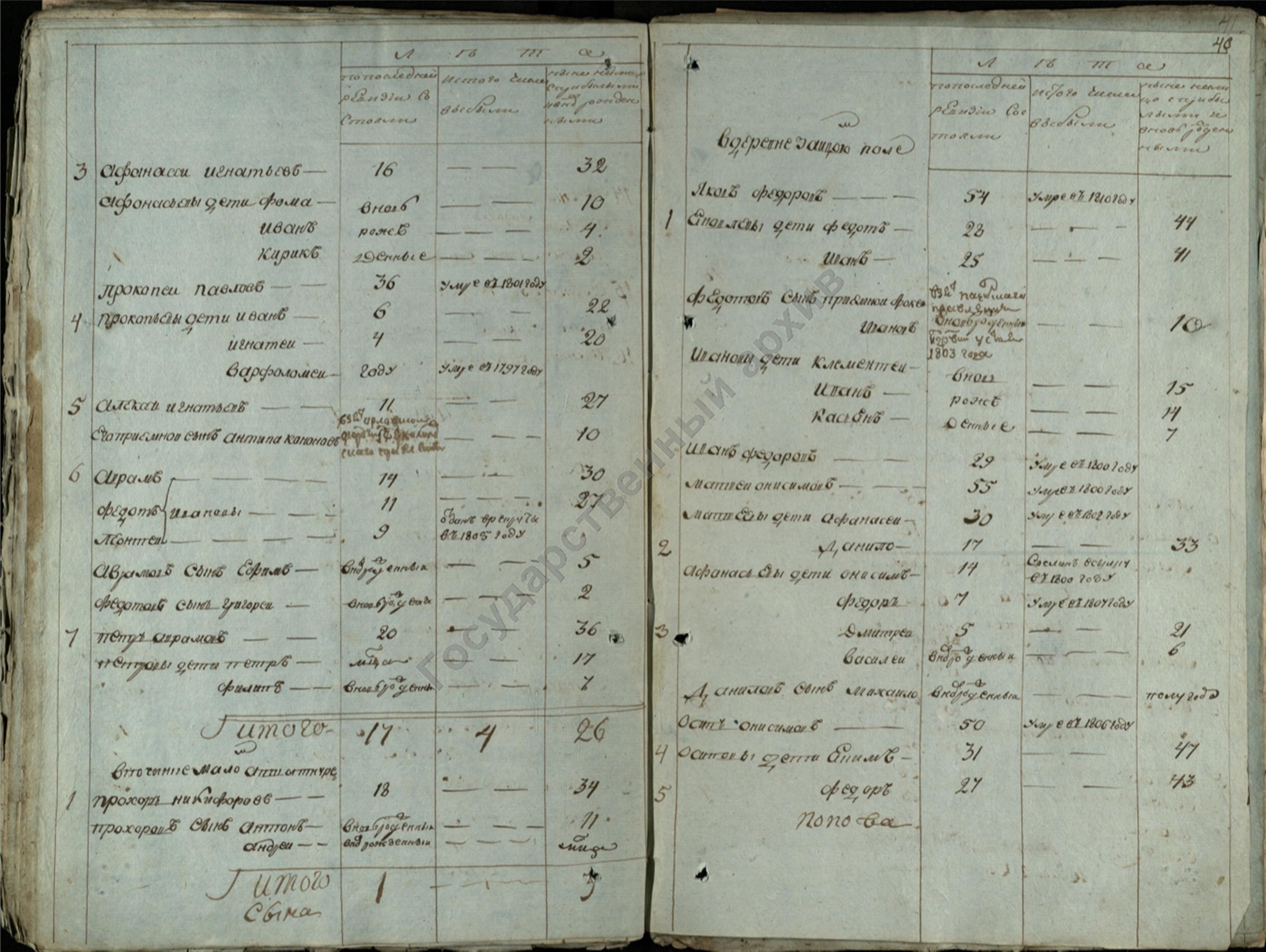 "Порфирий Григориев сын Вершинин 49 лет, жена его Неонила Афанасьева 51 лет, дети их Прокопий 28 лет, Ирина 18 лет, Артемий 13 лет, все были на исповеди и таинстве Причастия."