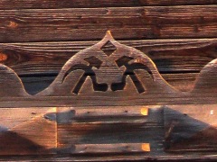 Такие наличники (с "Серпом и молотом" на фоне "будёновки") сохранились на доме в г.Нолинске на ул.Ленина. Фото Андрея Титова.