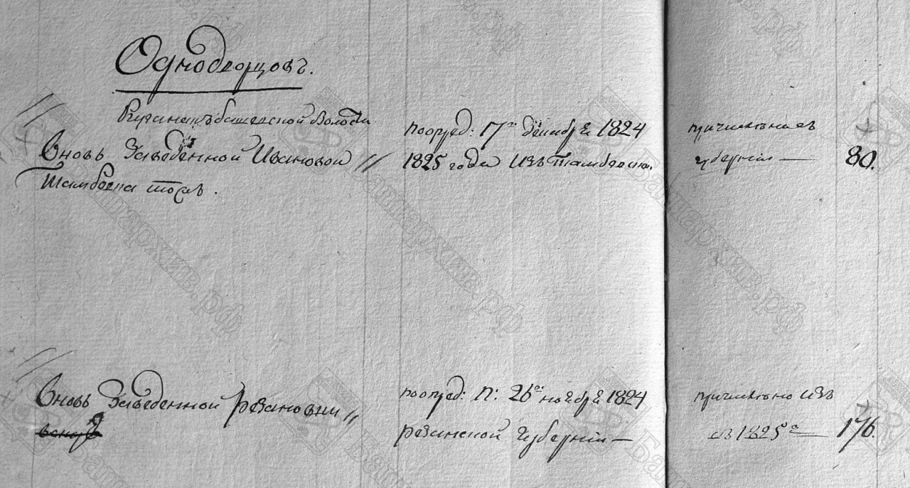 Есть только упоминание о том, что в 1825-м году к вновь заведённой Ивановке, Тамбовка тож, причислено 80 однодворцев из Тамбовской губернии.