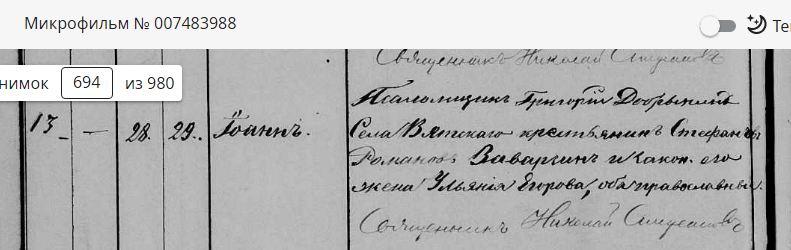 Что случилось с Романом Заварзиным (умер он или погиб) - не знаю, не выясняла, но его жена будучи вдовой (умершаго крестьянина - так в МЗ) через некоторое время вышла замуж за Менщикова Адриана Николаева из села Вятского, для которого это был уже третий брак.
