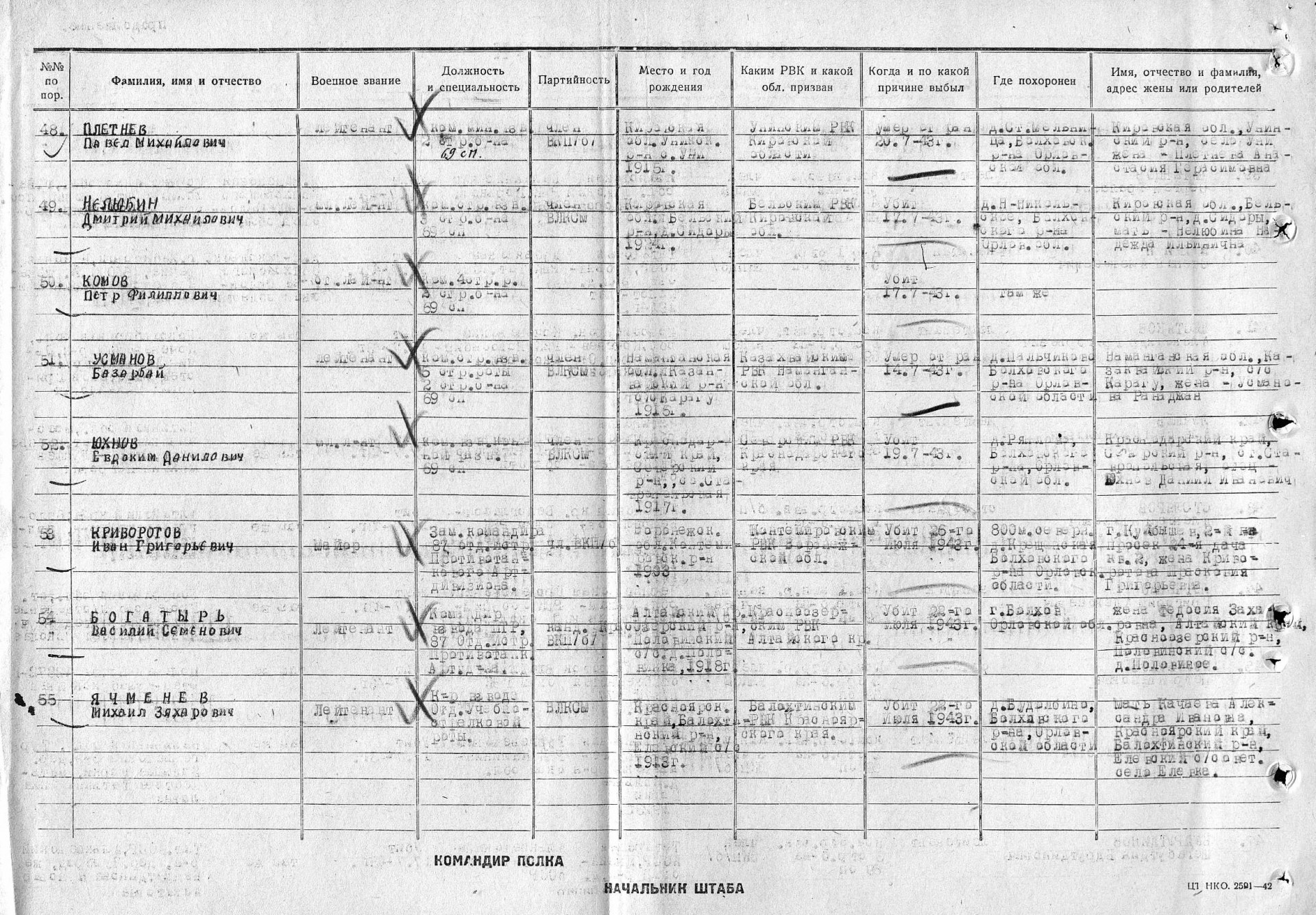 | Последнее место службы | - | 97 СД | Воинское звание: мл. лейтенант |