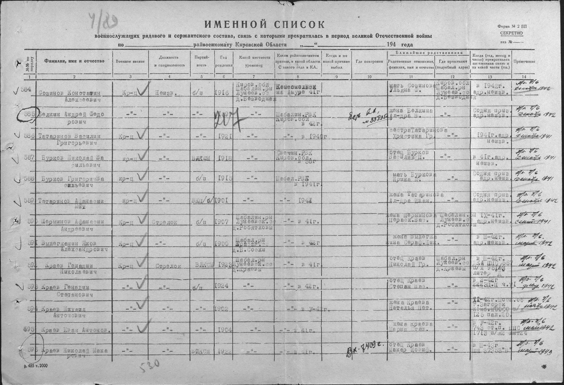 | 4313524008 | ТАТАРИНОВ Афанасий Михайлович | 1901 г. р., из д. Безводная Лунеевского с/с, красноармеец. Пропал без вести в декабре 1942 г. | Кировская область, Шабалинский район |
