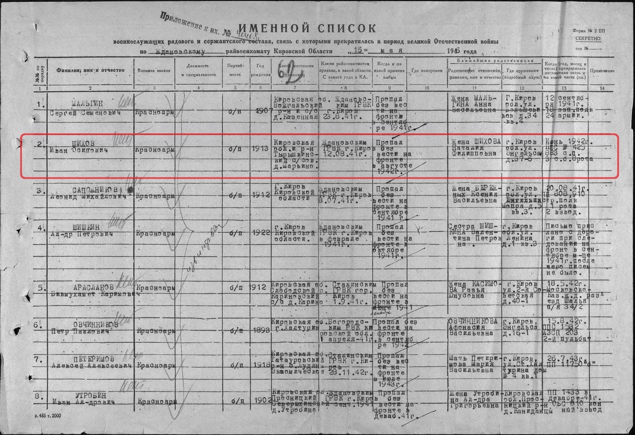 | Родился | 19.01.1913 | деревня Марьино (Николы Быстрицкого) (Город Киров, Кировская область) - существующий н.п. | д. Марьино, Тырышкинский с/с, Кировский район, Кировская область, www.obd-memorial.ru |