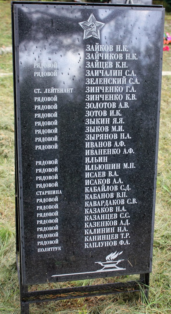 Зыкин Я.Я., 1908 г.р., уроженец д. Курдюмовщина, Высоковский с/с, Макарьевского района, Кировской области. Красноамеец, стрелок, 1247 СП, 377 СД. Умер от ран в 455 МСБ 07.01.1942 г. в районе д. Мыслово Киришского района Ленинградской области. Увековечен в списке захоронения братской могилы в д. Пчева, с.п. Пчевское, Киришского района, куда перезахоронен из д. Мыслово.