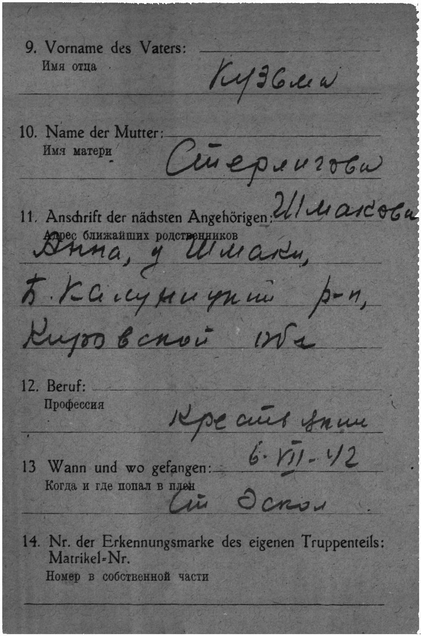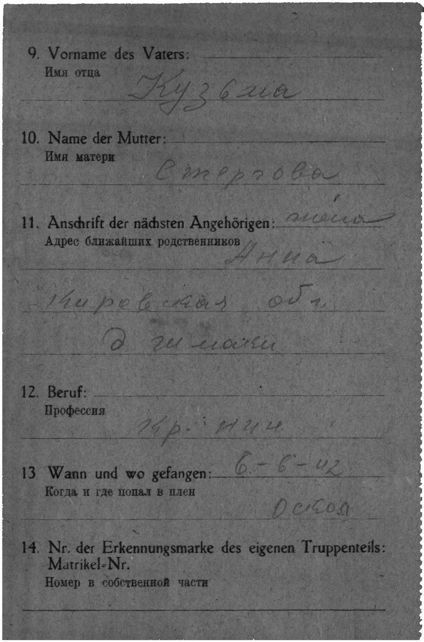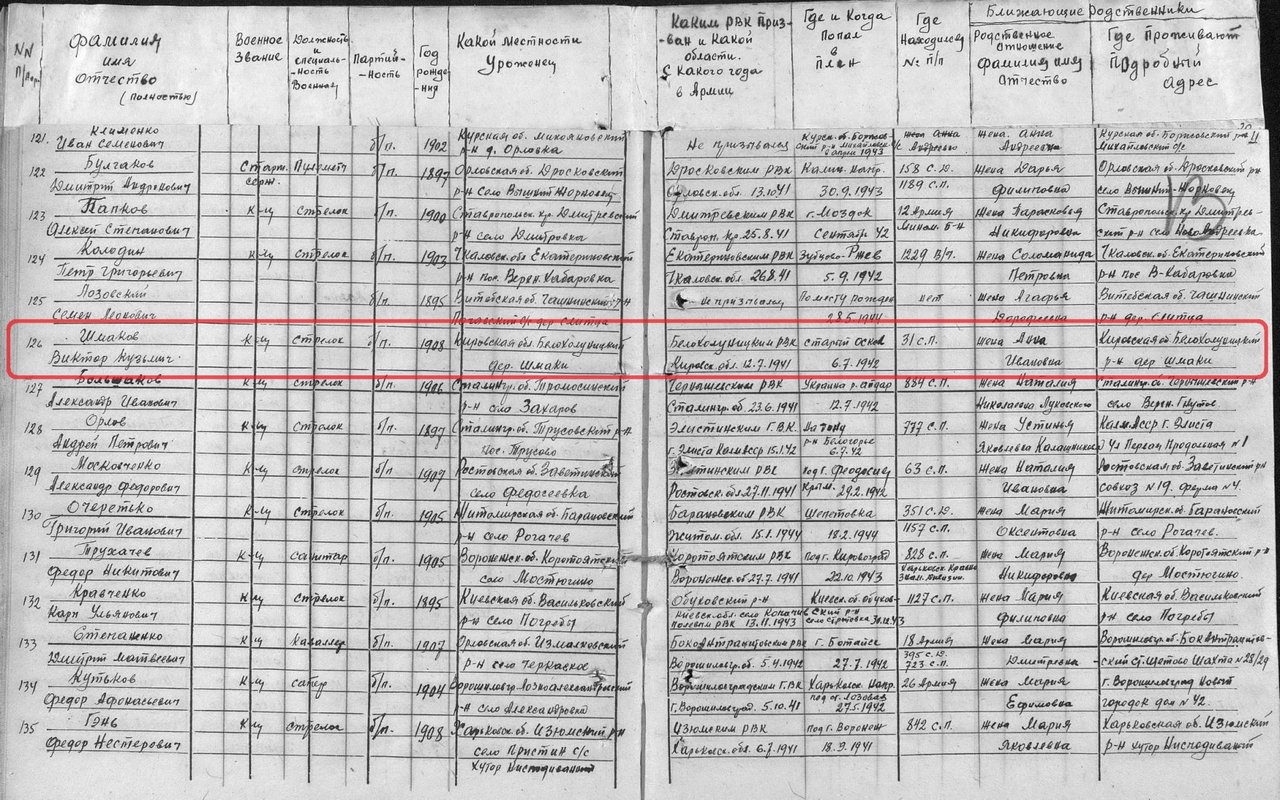 | Попал в плен | 06.06.1942 или 06.07.1942 | Старый Оскол | www.obd-memorial.ru |