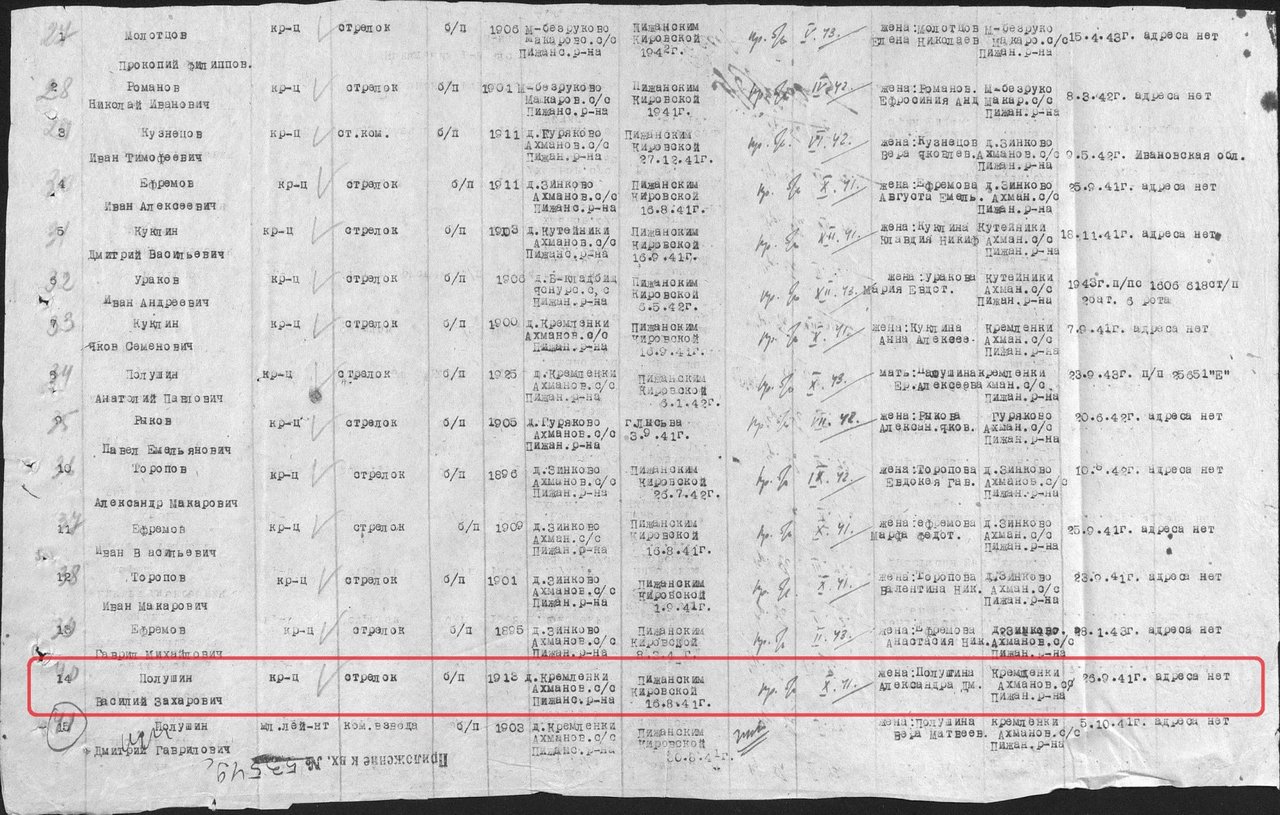 | Родился | 1913 | деревня Кремленки (Кременка при р. Кошурке) (Пижанский район, Кировская область) - ныне не существует | д. Кремленки, Пижанский район, Кировская область, www.obd-memorial.ru |