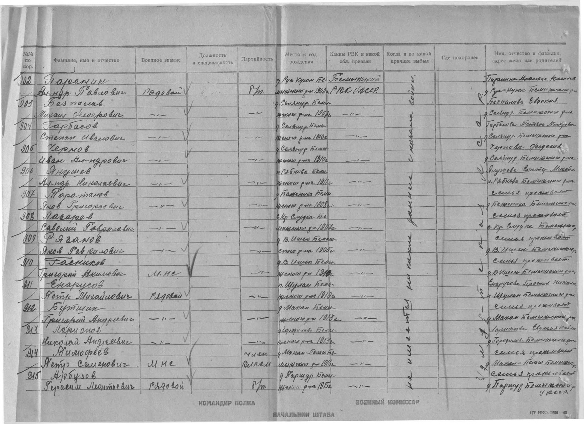 | Служба в армии | 1941 | 308 СП 98 СД | www.obd-memorial.ru |