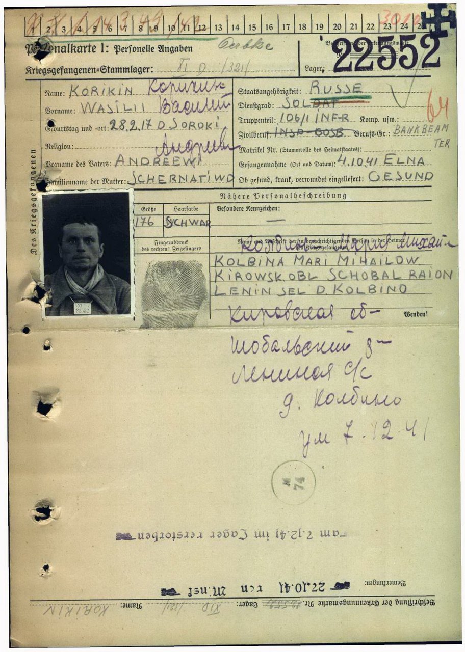 | Умер | 07.12.1941 | Stalag XI D (321) Oerbke (Эрбке, Германия) | Умер в немецком плену, в лагере военнопленных Эрбке. |