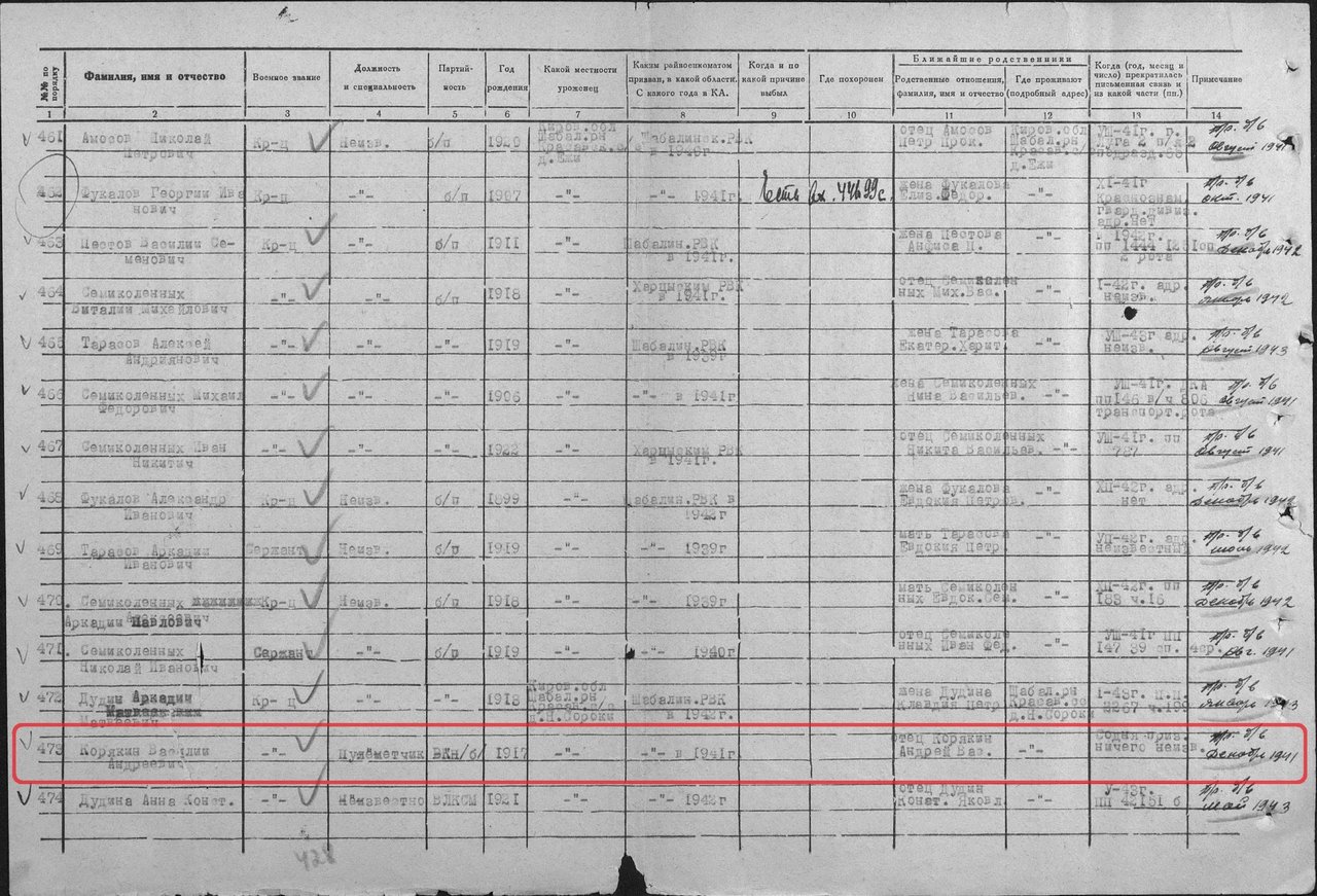 | 4313385007 | КОРЯКИН Василий Андреевич | 1917 г. р., из д. Колбины Ленинского с/с, красноармеец. Пропал без вести в ноябре 1941 года. | Кировская область, Шабалинский район |