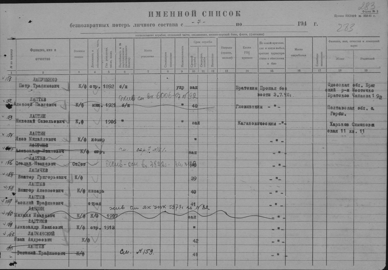 возможно, брат - Лаптев Михаил Алексеевич (мать - Лаптева Евдокия Андреевна)