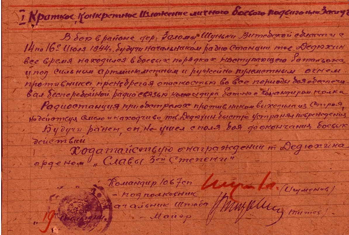 Приказ частям 311сд №59 от 29.07.44 о награждении орденом «Славы 3 степени»