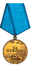 | Награждён: Медаль "За отвагу" | 17.10.1944 | Приказ подразделения № 53/н Красноармеец - стрелок 1ой стрелковой роты 144 Отдельного Стрелкового Батальона Краткое, конкретное описание подвига: С 22-24.08.1944г. при занятии деревни Андреевка,--------- и ликвидации окруженной группировки противника у деревни "Плажтиевка", находясь связным при Командном Пункте командира батальона, обеспечил бесперебойную живую связь с красноармейцами стрелковых рот, пробираясь с донесением, захватил в плен одного гитлеровца. За проявленное мужество и отвагу достоин правительственной награды Ордена Славы III степени. Командир 144 отдельного батальона морской пехоты Майор Фролов. | |