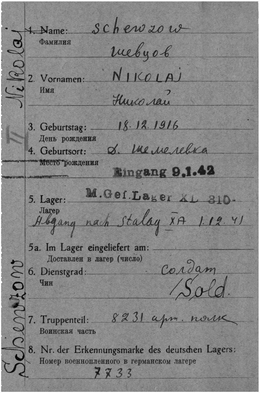 Карта военнопленного (I), лицевая сторона https://www.obd-memorial.ru/html/info.htm?id=82738866&page=15Карта военнопленного (I), обратная сторона https://www.obd-memorial.ru/html/info.htm?id=82738866&page=16Карта военнопленного (II), лицевая сторона https://www.obd-memorial.ru/html/info.htm?id=82738866&page=13Карта военнопленного (II), обратная сторона https://www.obd-memorial.ru/html/info.htm?id=82738866&page=14Зелёная карта, лицевая сторона https://www.obd-memorial.ru/html/info.htm?id=82738866&page=7Зелёная карта, обратная сторона https://www.obd-memorial.ru/html/info.htm?id=82738866&page=8Зелёная карта, лицевая сторона https://www.obd-memorial.ru/html/info.htm?id=82738866&page=9Зелёная карта, обратная сторона https://www.obd-memorial.ru/html/info.htm?id=82738866&page=10Зелёная карта, лицевая сторона https://www.obd-memorial.ru/html/info.htm?id=82738866&page=11Зелёная карта, обратная сторона https://www.obd-memorial.ru/html/info.htm?id=82738866&page=12Лазаретная карта, лицевая сторона https://www.obd-memorial.ru/html/info.htm?id=82738866&page=1Лазаретная карта, обратная сторона https://www.obd-memorial.ru/html/info.htm?id=82738866&page=2Лазаретная карта, лицевая сторона https://www.obd-memorial.ru/html/info.htm?id=82738866&page=3Лазаретная карта, обратная сторона https://www.obd-memorial.ru/html/info.htm?id=82738866&page=4Лазаретная карта, лицевая сторона https://www.obd-memorial.ru/html/info.htm?id=82738866&page=5Лазаретная карта, обратная сторона https://www.obd-memorial.ru/html/info.htm?id=82738866&page=6