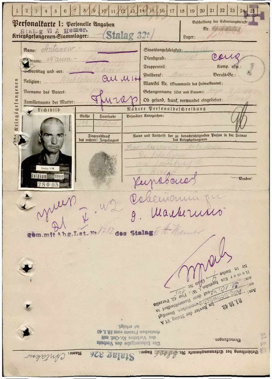 | Умер | 21.10.1942 | Stalag VI A Hemer (Хемер, Германия) | Умер в немецком плену, в ревире лагеря военнопленных Хемер. |