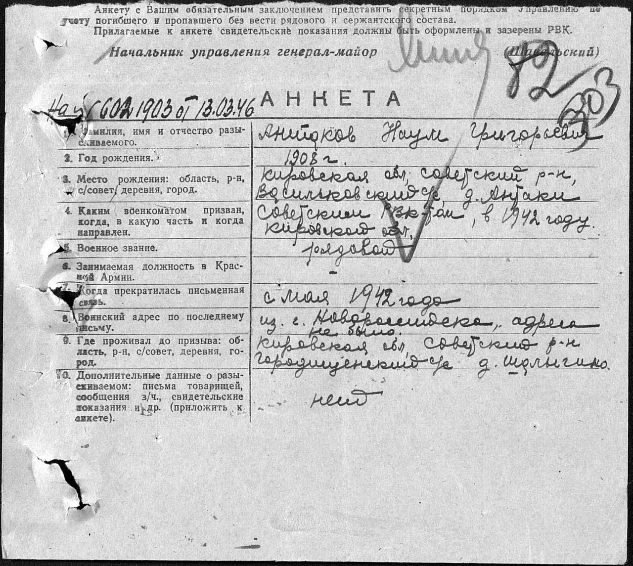 | Родился | 14.11.1908 | деревня Антаки (Советский район, Кировская область) - существующий н.п. | д. Антаки, Васильковский с/с, Советский район, Кировская область, www.obd-memorial.ru |