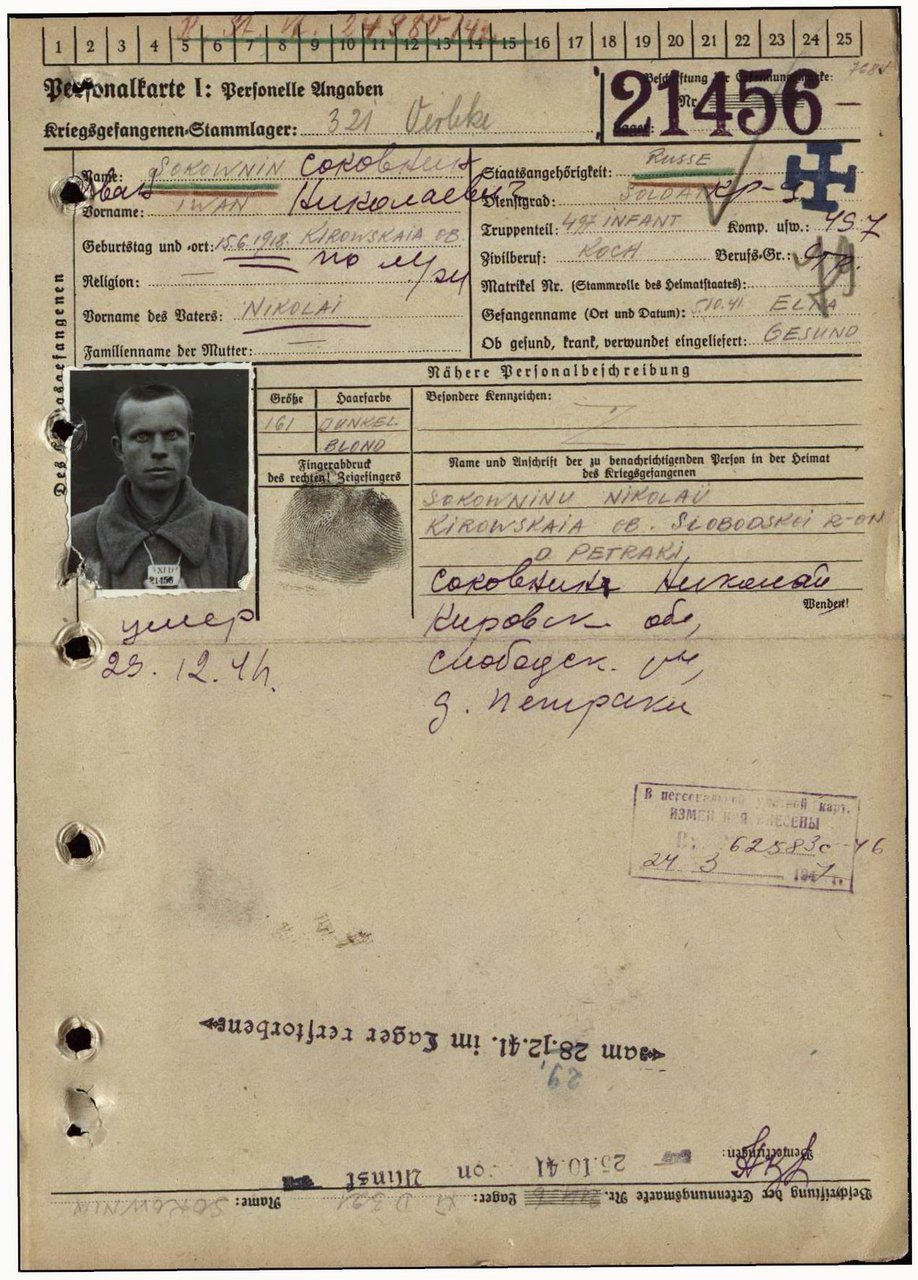 | Умер | 29.12.1941 | Stalag XI D (321) Oerbke (Эрбке, Германия) | Умер в немецком плену, в лагере военнопленных Эрбке. |