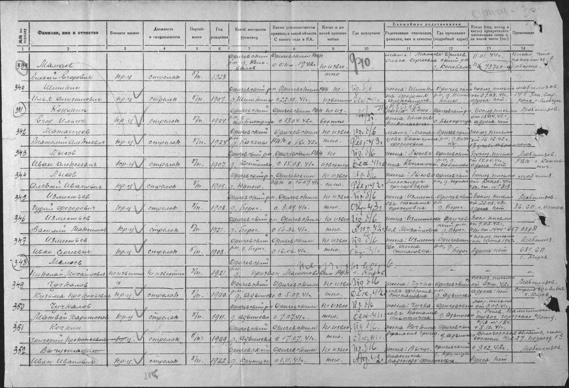 | 4308477023 | ЧУЧКАЛОВ Матвей Харитонович | 1911 г. р., с. Адышево Адышевского с/с, красноармеец, в декабре 1941 г. пропал без вести. | Кировская область, Оричевский район |