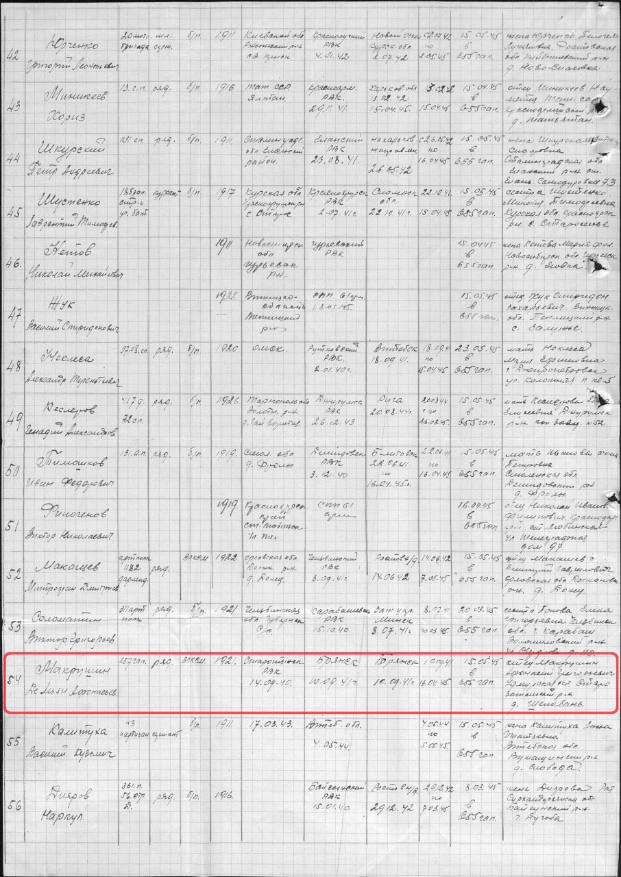 | Для прохождения дальнейшей службы направлен | 15.05.1945 | 655 ГАП | www.obd-memorial.ru |