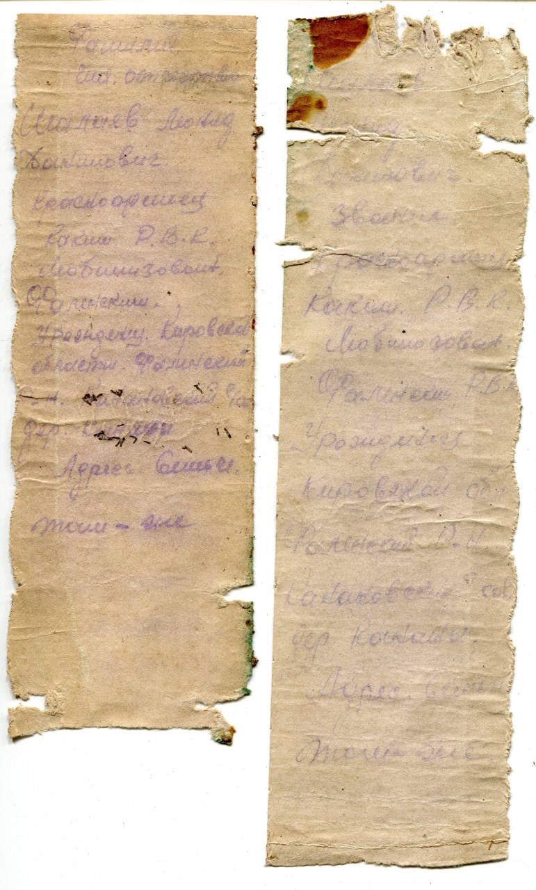 Шалаев Леонтий Данилович, 1901 г.р., из д. Кононы Николаевского с/с Фаленского района. Призван Фаленским РВК. Красноармеец, ездовой, 126 СП, 71 СД. Убит 15.01.1943 г. у д. Гонтовая Липка Мгинского района. Обнаружен в ходе эксгумационных работ поисковиками Международного военно-исторического лагеря "Волховский фронт" в районе Синявинских высот Кировского района Ленинградской области в августе 2015 г. (санитарное захоронение)(Вологодский поисковый отряд). Захоронен 24.08.2015 г. на мемориале "Синявинские высоты". Жена - Шалева (Шавкунова) Пелагея Егоровна, 1902 г.р., дети - Валентин, 15.07.1929 г.р.; Петр, 10.01.1931 г.р.; Нина, 10.10.1933 г.р.; Анатолий, 20.07.1938 г.р.; Тамара, 03.01.1941 г.р.