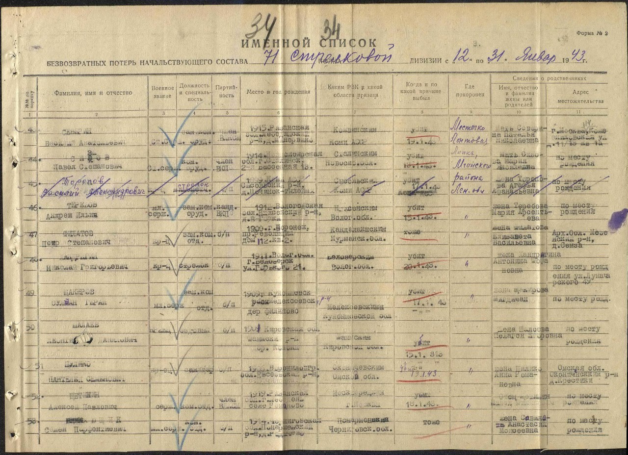 Списки воинов, погибших и пропавших без вести на фронтах Великой Отечественной войны