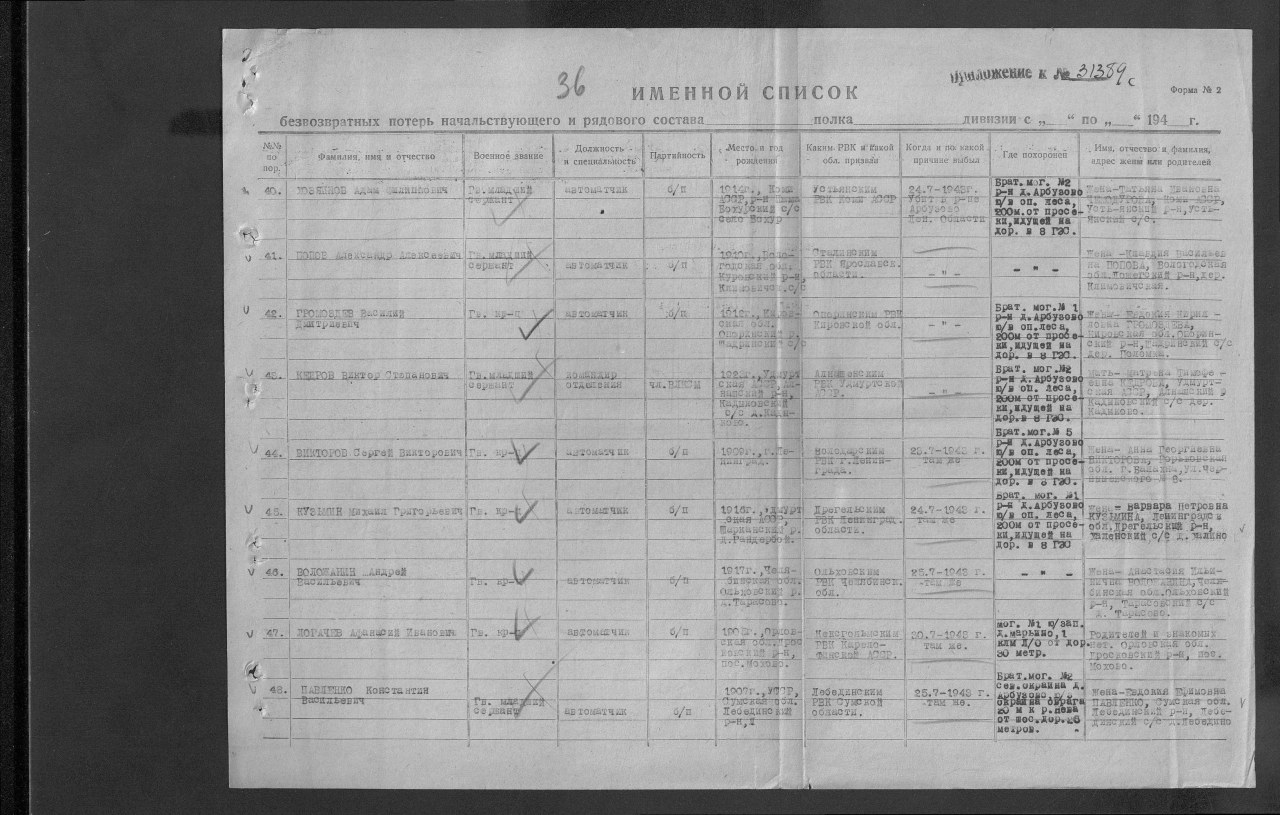 Списки воинов, погибших и пропавших без вести на фронтах Великой Отечественной войны