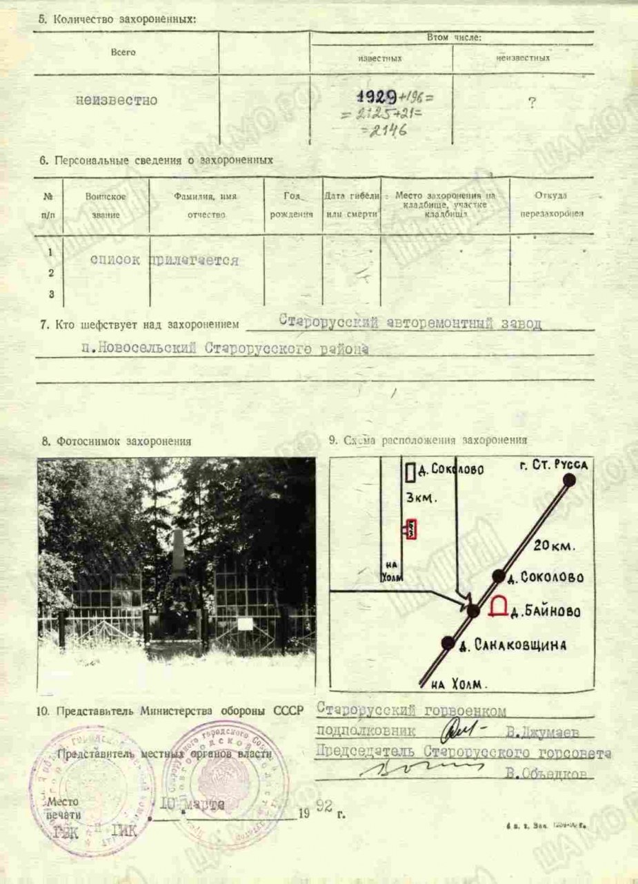 | Ранен | 04.03.1942 | в окрестности дер. Маврино Старорусского р-на | сквозное осколочное ранение |