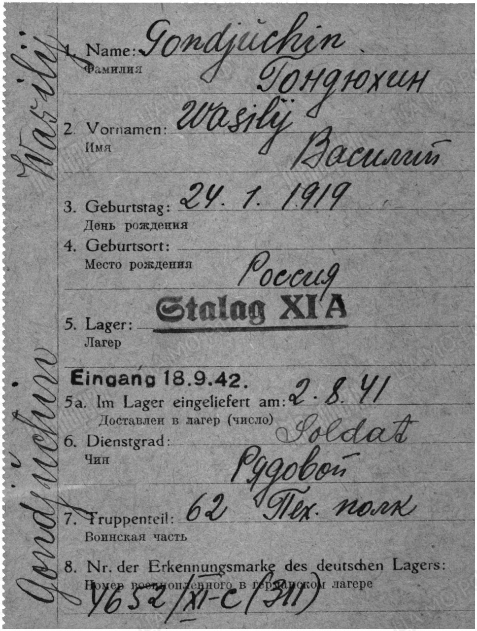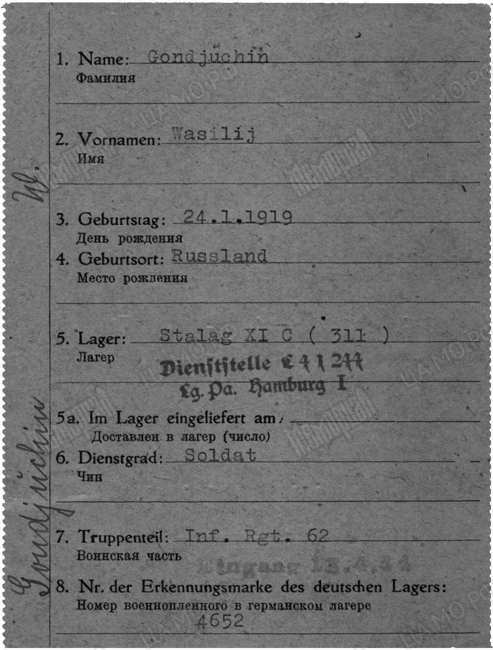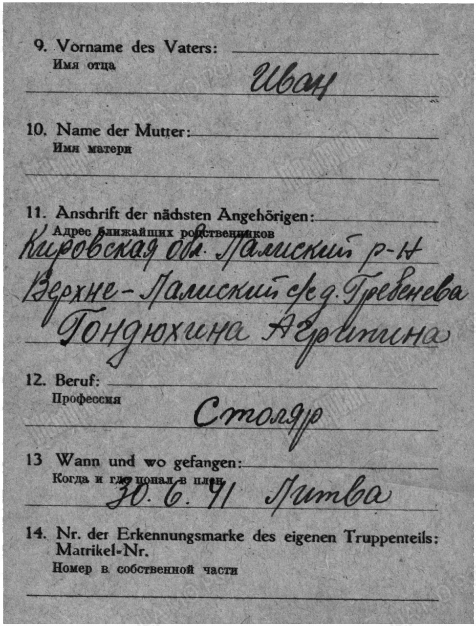 Карта военнопленного (I), лицевая сторона https://obd-memorial.ru/html/info.htm?id=82728430&p=9Карта военнопленного (I), обратная сторона https://obd-memorial.ru/html/info.htm?id=82728430&p=10Карта военнопленного (II), лицевая сторона https://obd-memorial.ru/html/info.htm?id=82728430&p=7Карта военнопленного (II), обратная сторона https://obd-memorial.ru/html/info.htm?id=82728430&p=8Зелёная карта, лицевая сторона https://obd-memorial.ru/html/info.htm?id=82728430&p=1Зелёная карта, обратная сторона https://obd-memorial.ru/html/info.htm?id=82728430&p=2Зелёная карта, лицевая сторона https://obd-memorial.ru/html/info.htm?id=82728430&p=3Зелёная карта, обратная сторона https://obd-memorial.ru/html/info.htm?id=82728430&p=4Зелёная карта, лицевая сторона https://obd-memorial.ru/html/info.htm?id=82728430&p=5Зелёная карта, обратная сторона https://obd-memorial.ru/html/info.htm?id=82728430&p=6