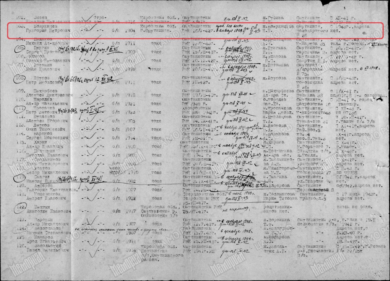 | 4308038025 | БОЯРИНЦЕВ Григорий Петрович | 1904 г. р., г. Омутнинск, красноармеец, стрелок, пропал без вести в феврале 1943 г. | Кировская область, Омутнинский район |