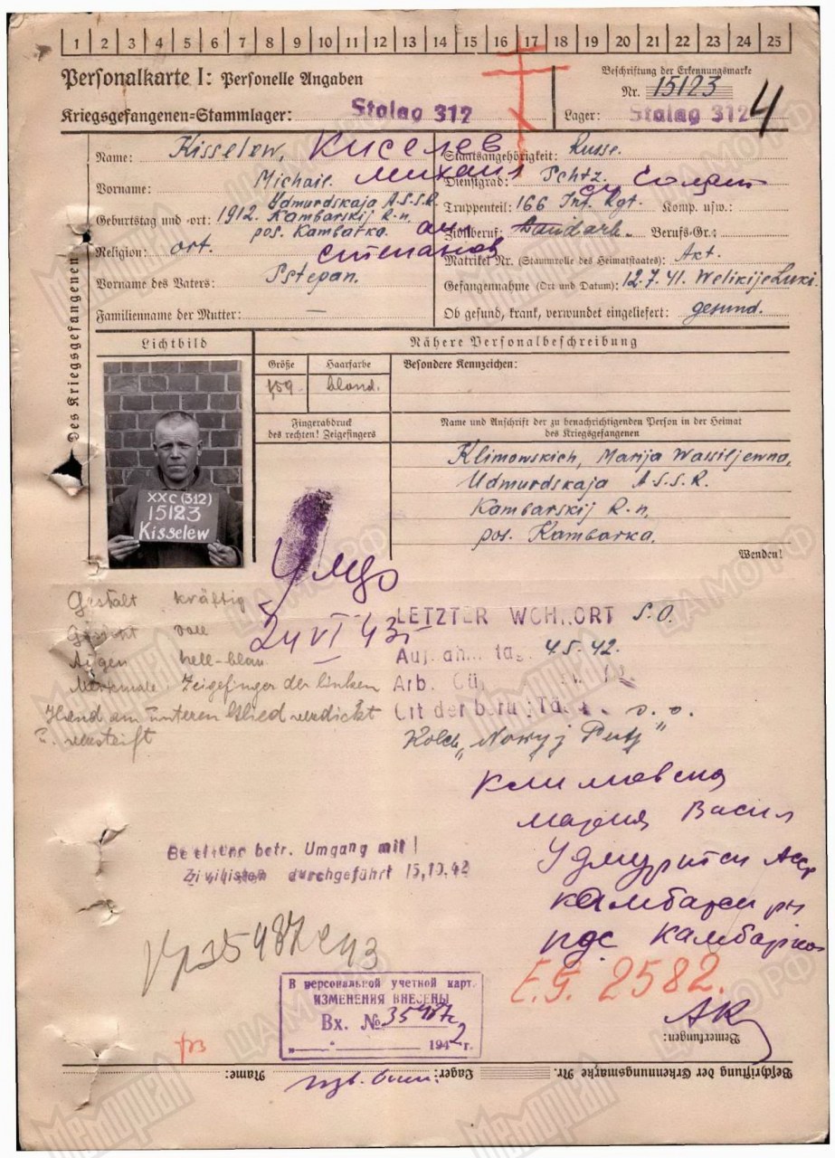 | 1806044028 | КИСЕЛЕВ Михаил Степанович | род. 1912, п. Камбарка. Призван в Сов. Армию. Рядовой. Пропал без вести в дек. 1941. | Удмуртская Республика, Камбарский район |