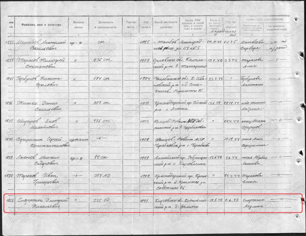| Родился | 26.10.1921 | деревня Фомичи (Бурыши) (Котельничский район, Кировская область) - ныне не существует | д. Фомичи, Мысовский с/с (возможно), Котельничский район, Кировская область (Вятская губерния, Котельнический уезд), www.obd-memorial.ru |