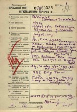 | Призван Советским РВК Кировской обл. | 24.06.1942 | Призван по мобилизации и направлен в распоряжение Начальника отдела укомплектования Ленинградского Фронта ст Кабан через Волховстрой. | |