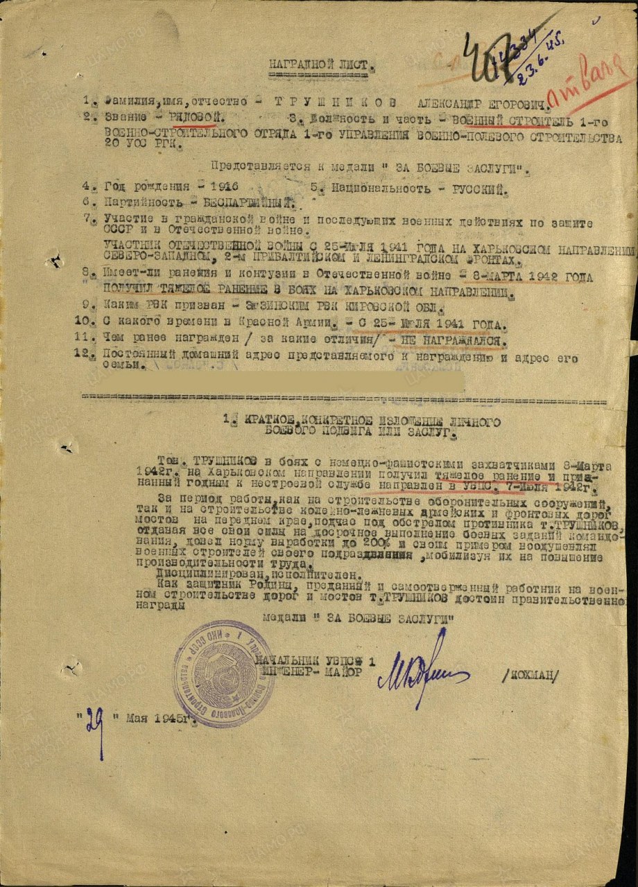 | Родился | 1916 | деревня Сержонки (Ульяновская, Ердвинская) (Афанасьевский район, Кировская область) - ныне не существует | Отец: Трушников Егор Капидонович Мать: Трушникова(Варанкина) Евдокия Борисовна |