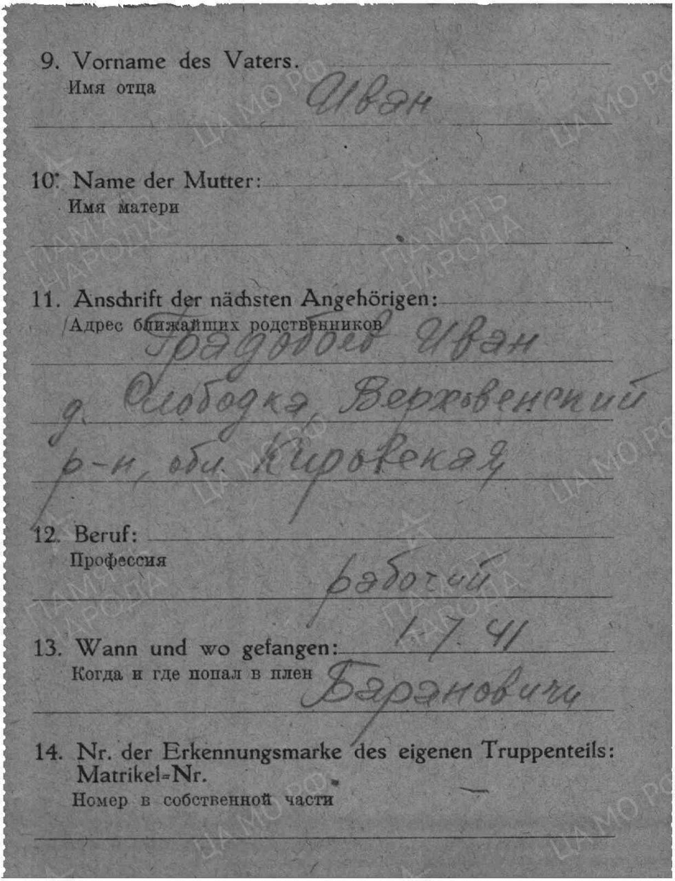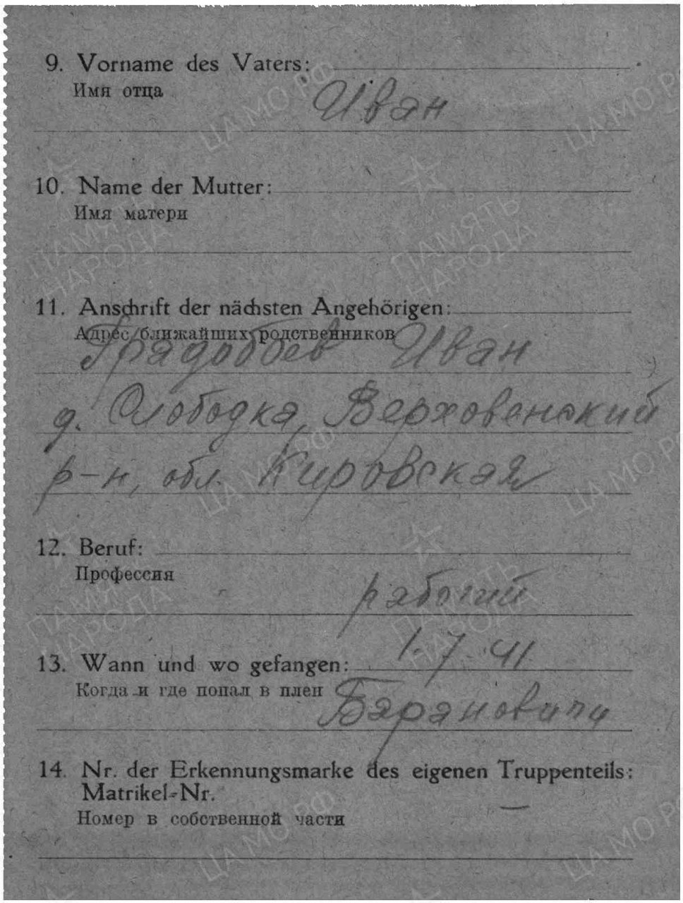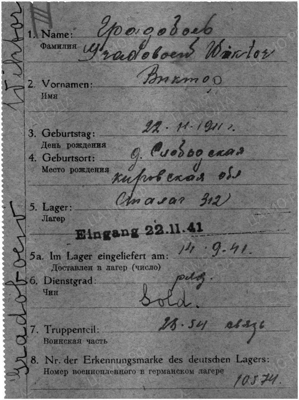Дата пленения 01.07.1941