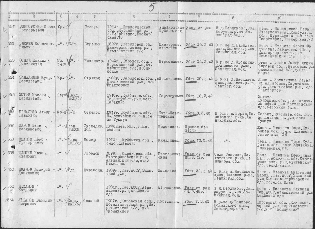 | Погиб | 22.03.1942 | Ленинградская обл., Залучский р-н, д. Июдкино, в районе |