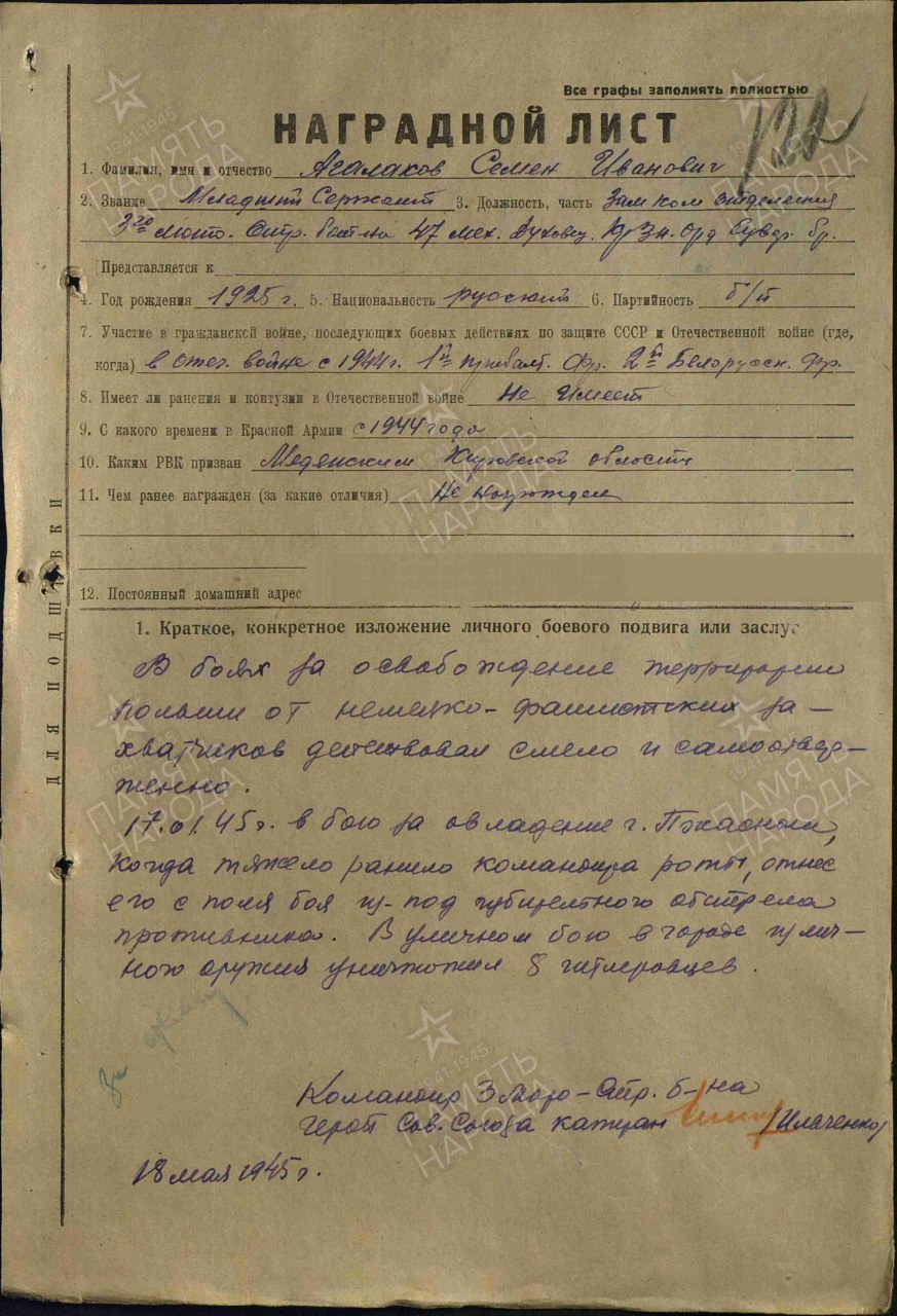 - Военно-пересыльный пункт 10 зсп 1 зсд Прибыл в часть 25.02.1944