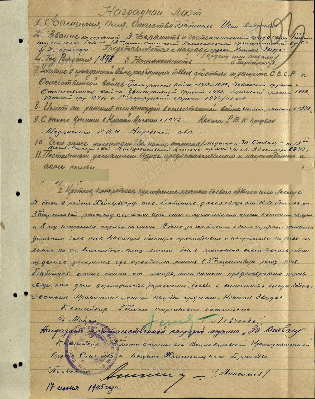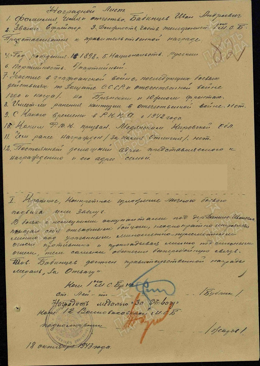 - Дата и место призыва: __.__.1942 Медянский РВК, Кировская обл., Медянский р-н