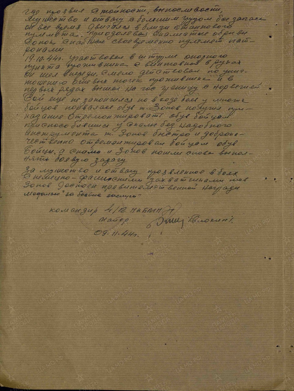 «В апреле-мае 1942 года мы всей бригадой высадились десантом в тыл противника на мыс Пикшуев…мы морем на эсминце подошли к мысу Пикшуев и группами на катерах-охотниках переправились на берег. Первые сутки погода была морозная. Снега было в пол-колена, и мы брели в ботинках с полным боевым оснащением (25 — 30 кг), неся на себе материальную часть миномёта и боезапас. На вторые сутки пошел сырой снег и дождь. Все промокли. И так шли трое суток через сопки и лощины. Противник нас не замечал. Мы не дошли около километра до расположения противника, когда были обнаружены. Он обрушил на нас всю его мощную артиллерию, авиацию и т. д. Нам пришлось лежать в снегу. Драться 18 суток. До нитки все мокрые. Пища — только сухой паёк. Были и голодны, и холодны. Но дрались до последних сил, кто как мог вынести. Отходить было некуда. Позади — море. После 7 суток боёв нас в бригаде стало мало, тогда с моря нам каждый день начали давать подкрепления, и мы дрались с превосходящей силой противника. Не считались, не считались какой ценой, живой силы нам обходится, но задачу надо выполнить, и мы выполнили. События в „Долине Смерти“ потрясли нас. Буран…Ураганный ветер…Замерзающие в снегу солдаты. Спастись можно было только группами, тесно прижавшись друг к другу в снежных ямах. Одиночки пропадали бесследно. Приходилось постоянно в минуты затишья ползать по траншее и будить бойцов. Туда ползёшь, разбудишь, возвращаешься, а он уже замёрз. Единственное средство для обогрева — фляжка со спиртом на боку».