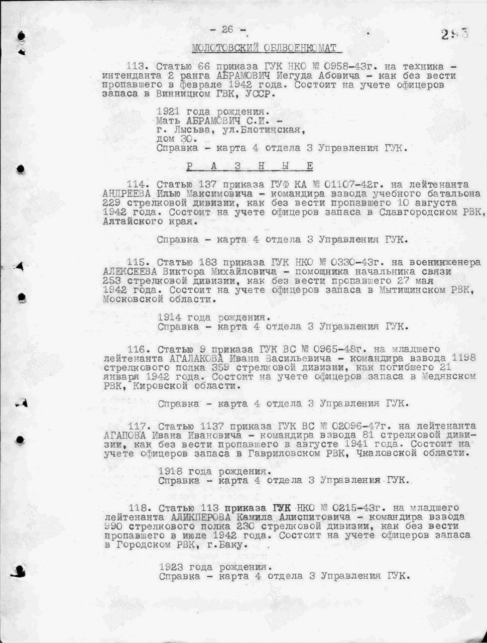 - Воинская часть: 711 сп 215 сд Дата прибытия: 30.05.1942
