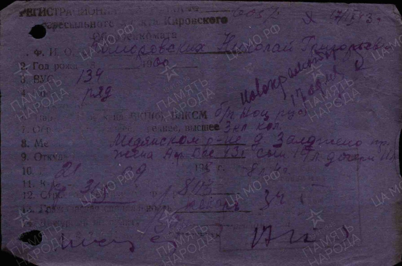 | Родился ребёнок: Комаровских Виктор Николаевич | 1922 | ||