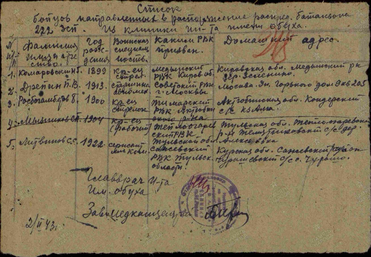 Военно-пересыльный пункт 202 зсп Выбытие из воинской части 17.02.1943