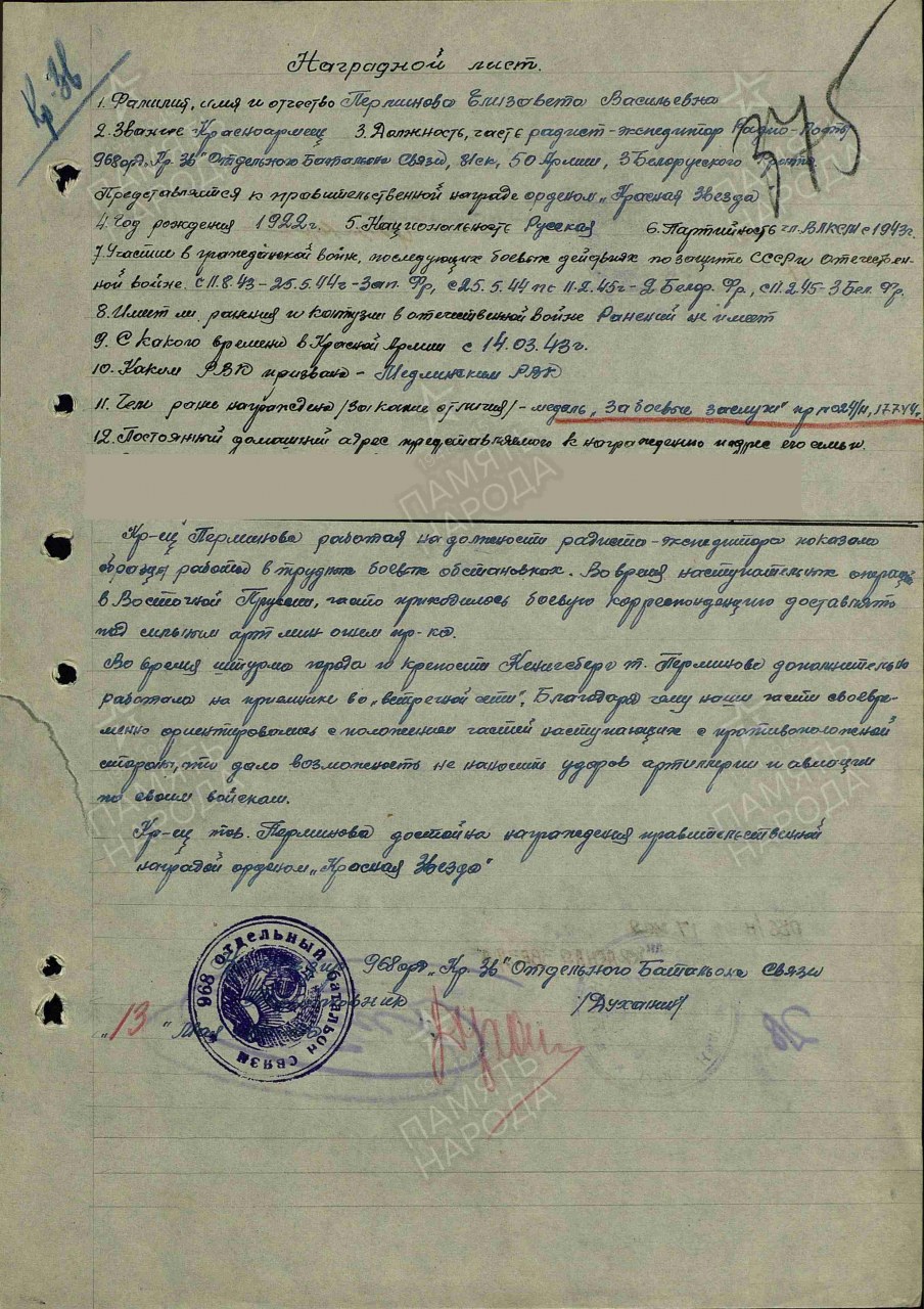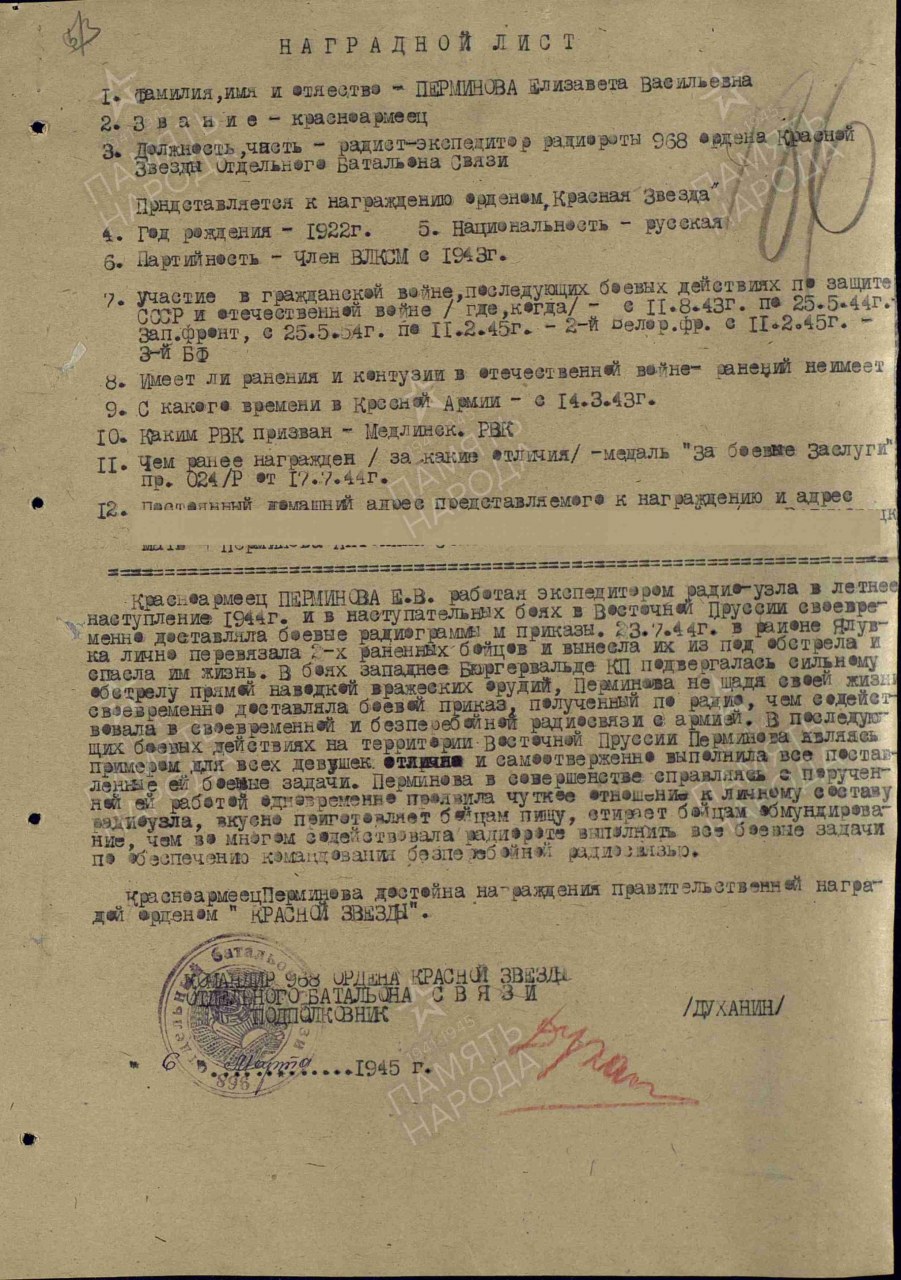 Военно-пересыльный пункт: 208 зсп Прибыл в часть: 02.04.1943Военно-пересыльный пункт: 208 зсп Выбытие из воинской части: 14.04.1943Куда выбыл: 36 пс