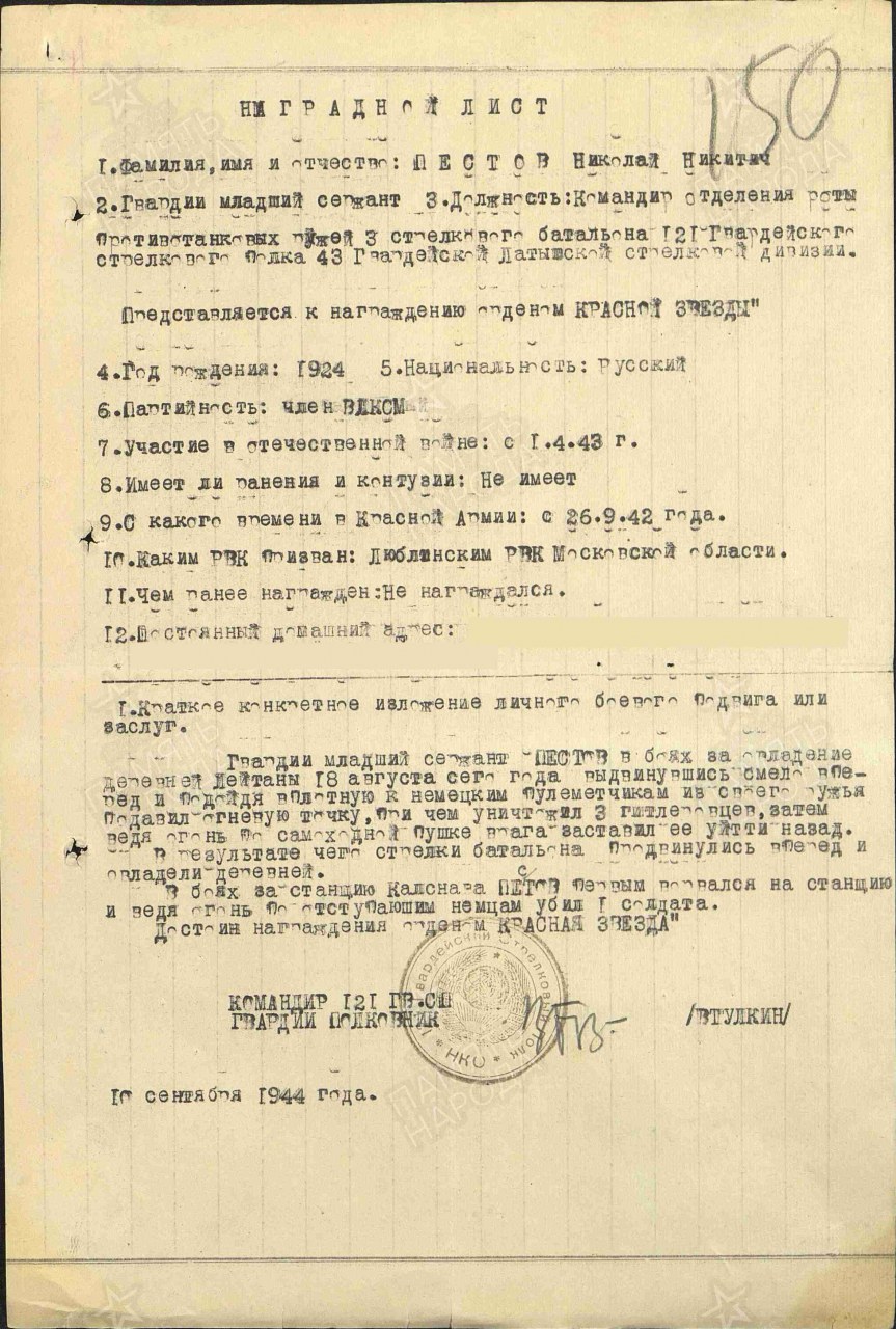 - Военно-пересыльный пункт 140 азсп Прибыл в часть 12.02.1945