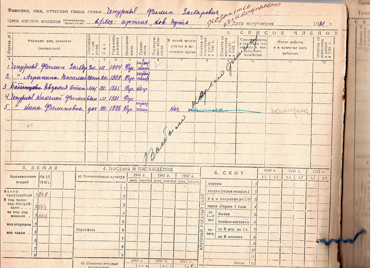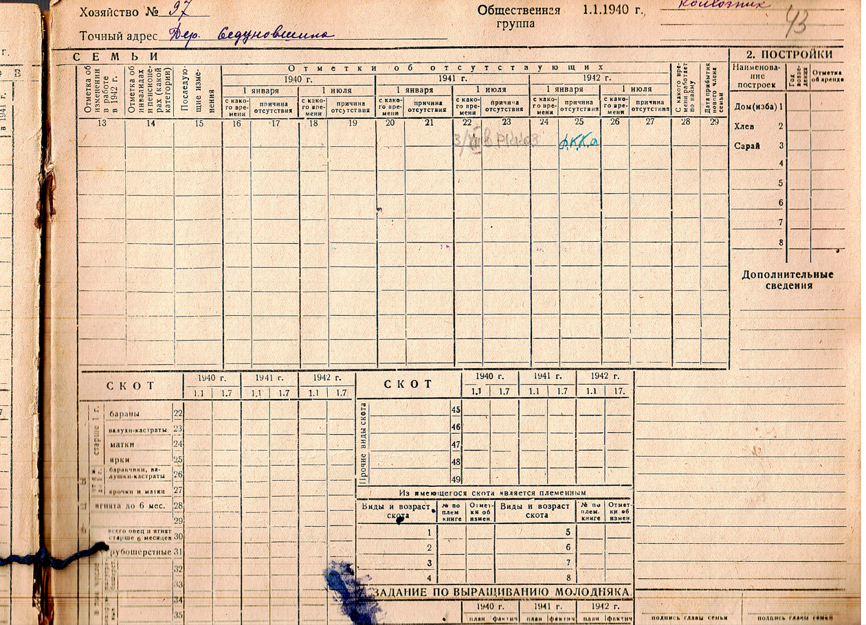 | Изменил место проживания | 1938 | деревня Седуновщина (Петра Бережных) (Юрьянский район, Кировская область) - ныне не существует | |